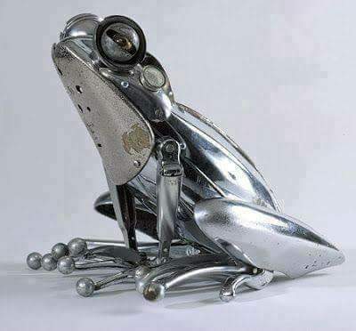 Bagi orang kreatif, besi bekas dapat disulap menjadi benda-benda unik. Salah satunya yaitu diubah menjadi seekor katak yang mengagumkan. Detail katak benar-benar mirip dengan aslinya, termasuk kaki-kaki dan mata yang dibuat.