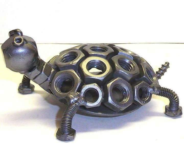 Selain bisa disulap menjadi bentuk monyet, orang kreatif juga bisa menyulap sekrup menjadi seekor kura-kura. Bentuk kura-kura juga sama dengan aslinya, termasuk tempurungnya yang terlihat hampir mirip asli. Padahal bahan utamanya adalah sekumpulan sekrup.