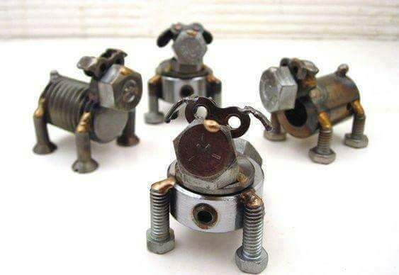Jika besi bisa disulap menjadi anjing koboi, maka sekrup juga bisa menghasilkan anjing-anjing kecil yang berkelas. Bentuknya unik dan terlihat seperti nyata meskipun berasal dari benda-benda kecil.